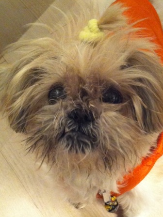 豆サイズシーズーの頑張るハピくん。