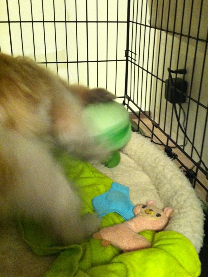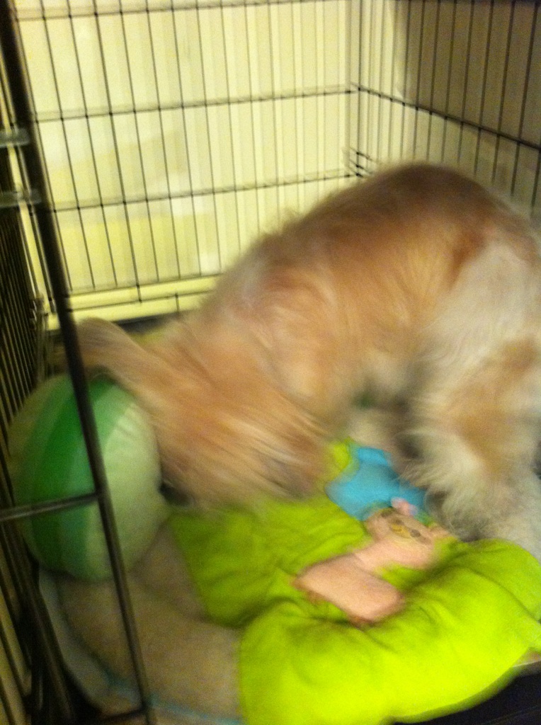 3週間に一度の検診に行きました。 なんと、またまた、 ![]() 良い結果![]() でした!リンパ球数は、前回、前々回は、約11,000個でしたが、 (基準値 500~4900) 今回は、8896です! 先生も検査結果を見て「どこも悪くないね~」とおっしゃっていました ![]() 唯一、膀胱炎が心配されますが、ここ一週間、尿の臭いも無くなって、細菌も少なくなってきている気がします。検査結果は、次回です。 すごいぞ!ノフ! 本日のノフ。 手前のクッションは、年末に買ってあげたもので今一番のお気に入りです。 意地悪してハウスの外に持ち去ると、即効、取り返しに来ます。 使い方は、ブンブン振り回してやっつけてる感じ ![]() こんだけ元気なら、病気の犬とは思えないねぇ。