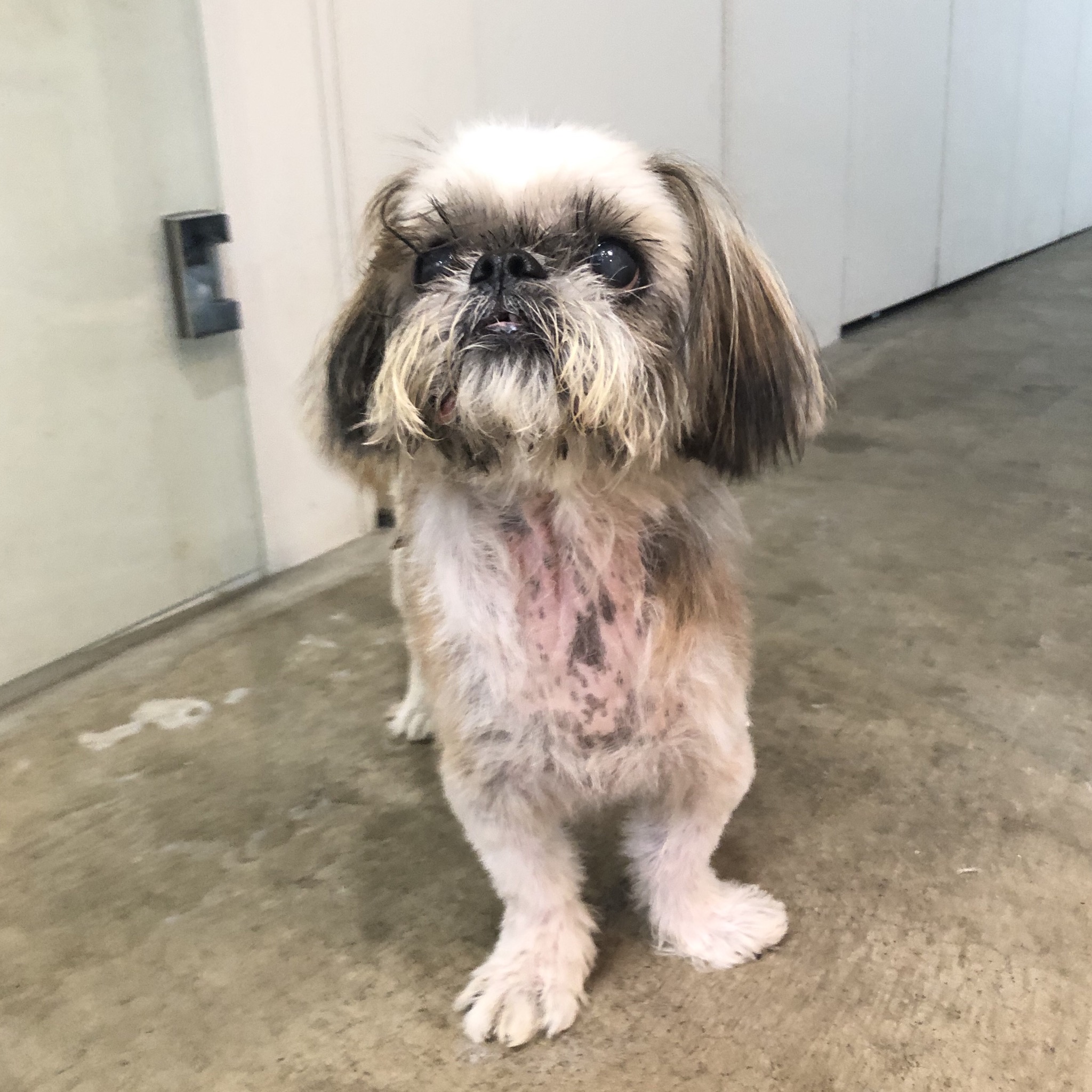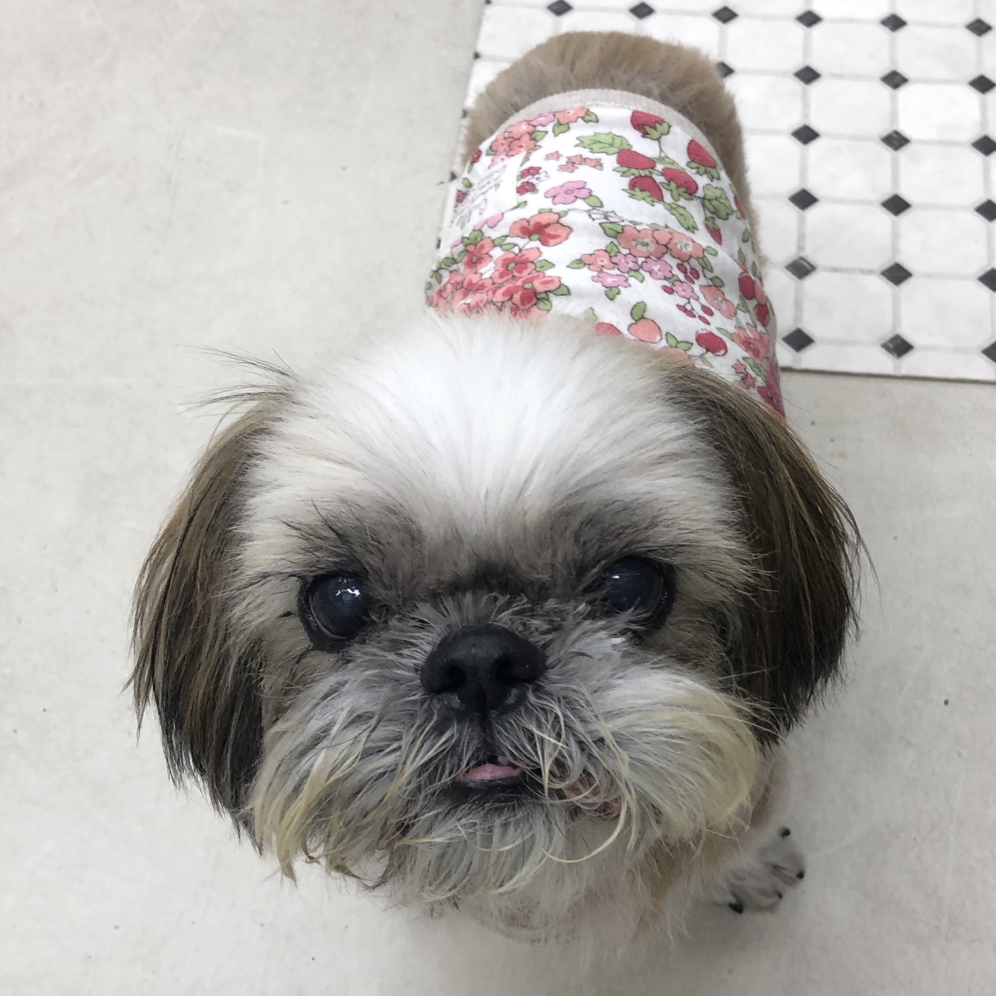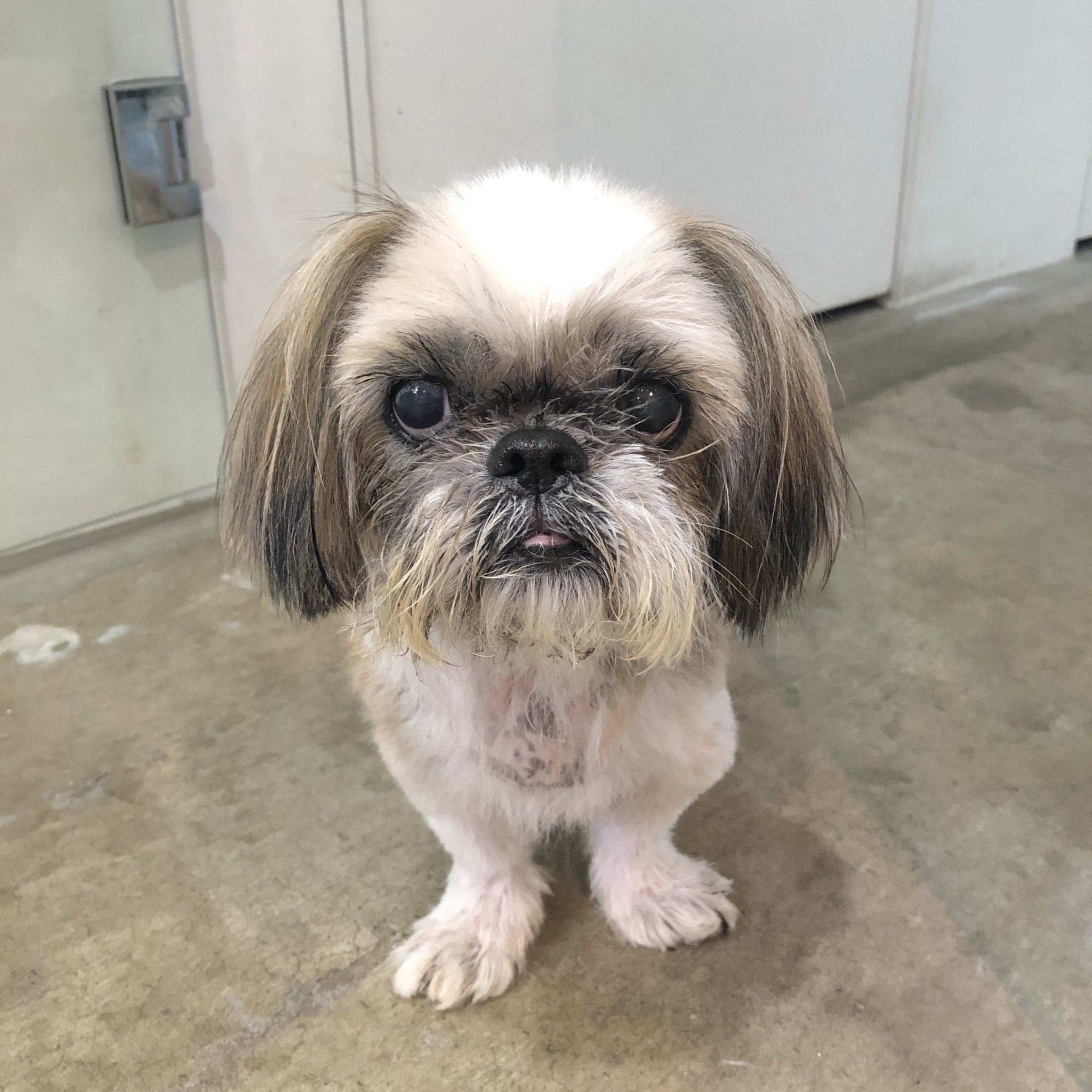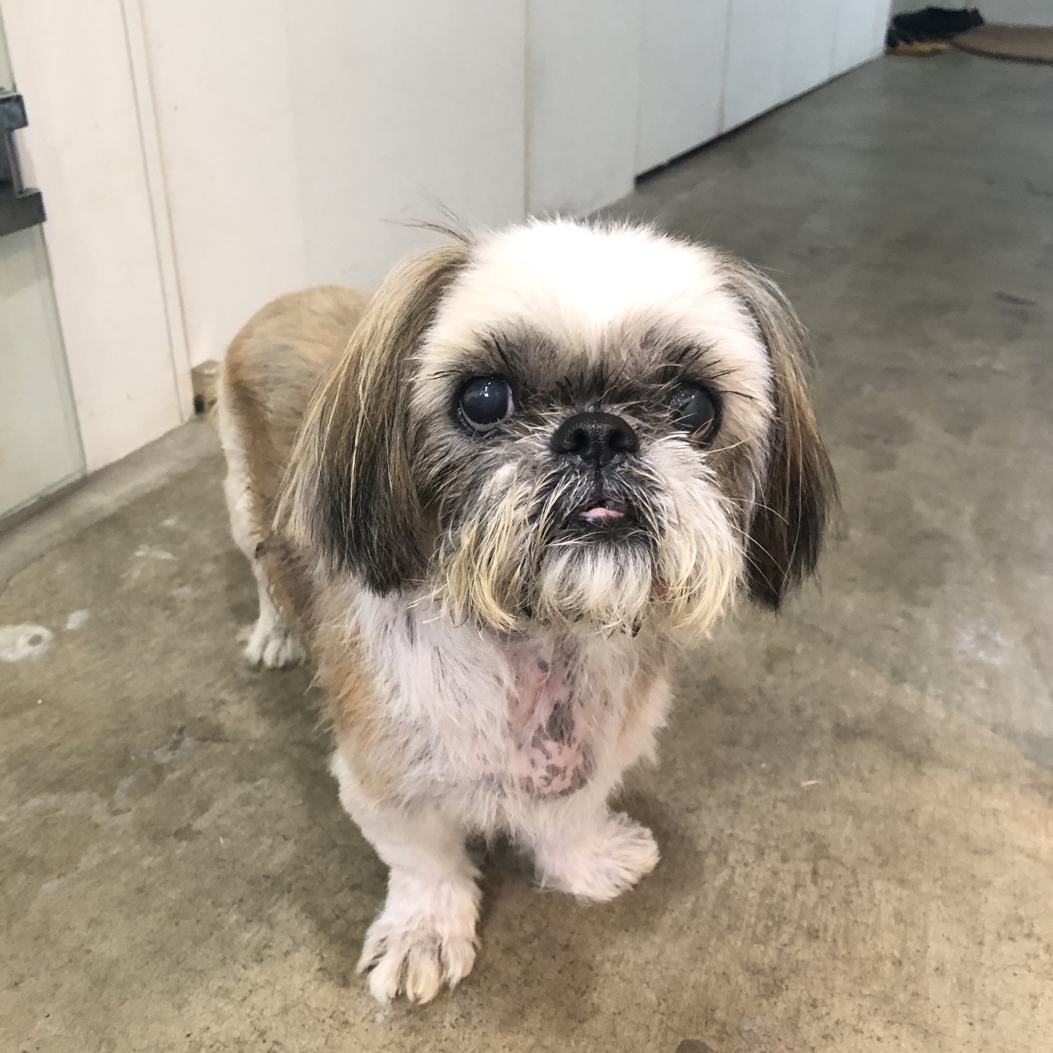帰宅して、玄関ドアを開けたら、 ちょうどハラミちゃんがトイレに向かってるところだったので、用を足すまで、こっそりしてました。 終わったようなので、家に入ったら、 気づいて駆け寄ってきたハラミちゃん♪ お留守番中におしっこしてるのは珍しいです。 その後、夜の散歩、朝の散歩で頻尿になってると思ったら、血尿でてしまいました! 病院へGO 膀胱炎でした。 雨でもお散歩してトイレを我慢してはいないので、 冷えのせいのようです。 ここ二日ばかり、湿度がすごいので、 皮膚の事も気になり、出かける時に、 エアコンの除湿モードを1、2時間セットしていたので、それが原因かな? みなさんもお気をつけください。 食欲もあり、元気ではあります! 現在、体重6.1キロ (^-^)v 薄毛だった肩あたりに毛も生えてきています。 顔は自然乾燥(本人希望) シーズーらしくなりました♪ めざせ!ハダカの暮らし! いつも、爪の根元に脂が沢山ついているので、 クレンジングオイルや、ナノベイジングプロ、ひのきの香りのニームのおふろを使ったりしているのですが、脂の量がすごいので、すっきり取れたり、風で飛んだりしません。風をあてながら、毛の柔らかいハブラシでブラッシングしたら、嫌がることもなく取れました! 指やコームで取ろうとすると嫌がるので、ハブラシの方がいいみたい。 ★ここだけプロフィール★ ポリシー:不満があったらハッキリ伝える ひみつ:時々大きな声で寝言を言う 食事:豪快な食べっぷりと飲みっぷり 引き際:早め 記憶力:高い 好きなフレーズ:わーわーわー 得意な声まね:猫、にわとり 得意な顔まね:研ナオコ 嫌いなこと:目薬 気になること:肉なのか魚なのか 似合う色:さくら色 飼い主になったら出来ること:ギャップ萌え トリビア:実はチョビベロでなくて下唇 テーマ曲:粉雪 有効成分:ブレない女成分ハラミチン配合 ラインスタンプ「ハラミちゃんのきもち」 リリース! ハラミはAngel's Taleの保護犬です ツンデレ系シーズー女子・ハラミ先輩★里親募集中! (仮名・メス・申告12才) 日々の様子 >>>ハラミ日記 ハラミについて>>>プロフィール 保護時の検診>>>代表ブログ 保護時の様子>>>プチステイ先