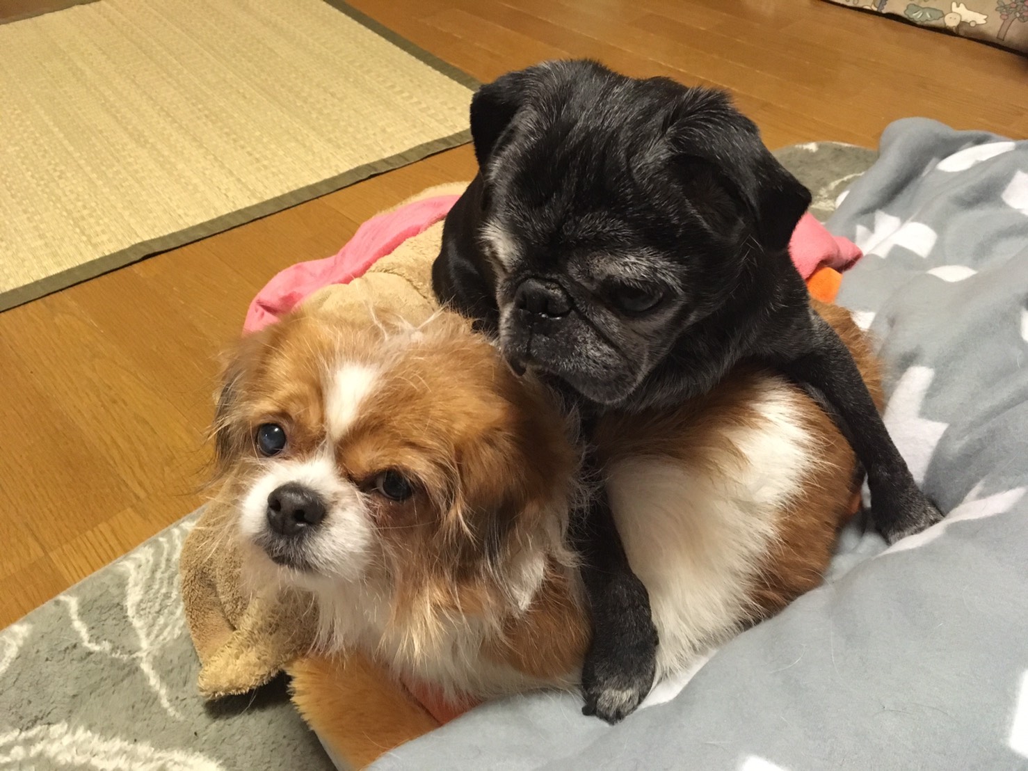 ★T様からのお便り パピさん、ごぶさたしております。 いつかのお電話(失神事件)では驚かせてしまい申し訳ありませんでした。 もーい君ですが、その後少しづつにスキンシップを受け入れてくれるようになり、1月末には、なんと撫でる事に成功‼︎ 最初はひと撫で…それが徐々に増えて、今ではベッドで寛いでいる間は、かなりの時間触れる様になりました。 特に就寝時電気を消してからは、触っても大人しくずっと横になっています。もーい君をひとしきり撫でてから寝る、そんな嬉しい習慣が増えました。 動いている時に触られる事にはまだ抵抗がある様です。もーい君から刺激をもらい、パグ先輩も元気です。 もーい君を迎え始めての春がすぐそこまで来ています。いつか一緒にお花見に行ける日が来るように、桜咲く日を目指し、もーい君との日々を楽しんでいきたいと思っています。 1月下旬 3月上旬 ブラッシングも頑張りました! ϵ( 'Θ' )϶ パピコメ ϵ( 'Θ' )϶ 感激で涙がでました 。゚(゚´Д`゚)゚。 パグ先輩と仲良くさせてもらい、ブランケットに包んでもらい、、、 犬達だけのワイルドなアウトドア生活をしていたモーイくんとの暮らしには、他の保護犬にはない苦労がありますが、家庭犬として着実に歩んでいる姿に感動したんです。 失神事件とは、 意を決して、モーイくんにリードをつけようとしたところ、失神した!という事件です(^◇^;) そんなこともありますが、、、今では、誰よりも、ほっこり生活をおくっているモーイくん。 幸せだね〜♪ 会は違いますが、モーイくんと同郷の虹生くん(にじおくん、ドッグレスキュー)もよろしくお願いいたします! 写真からも分かるとおり、ピュアな虹生くん。 ドッグレスキューには、同じく同郷のビートくんもいます! ビートくんの方がモーイくんに似てる♪