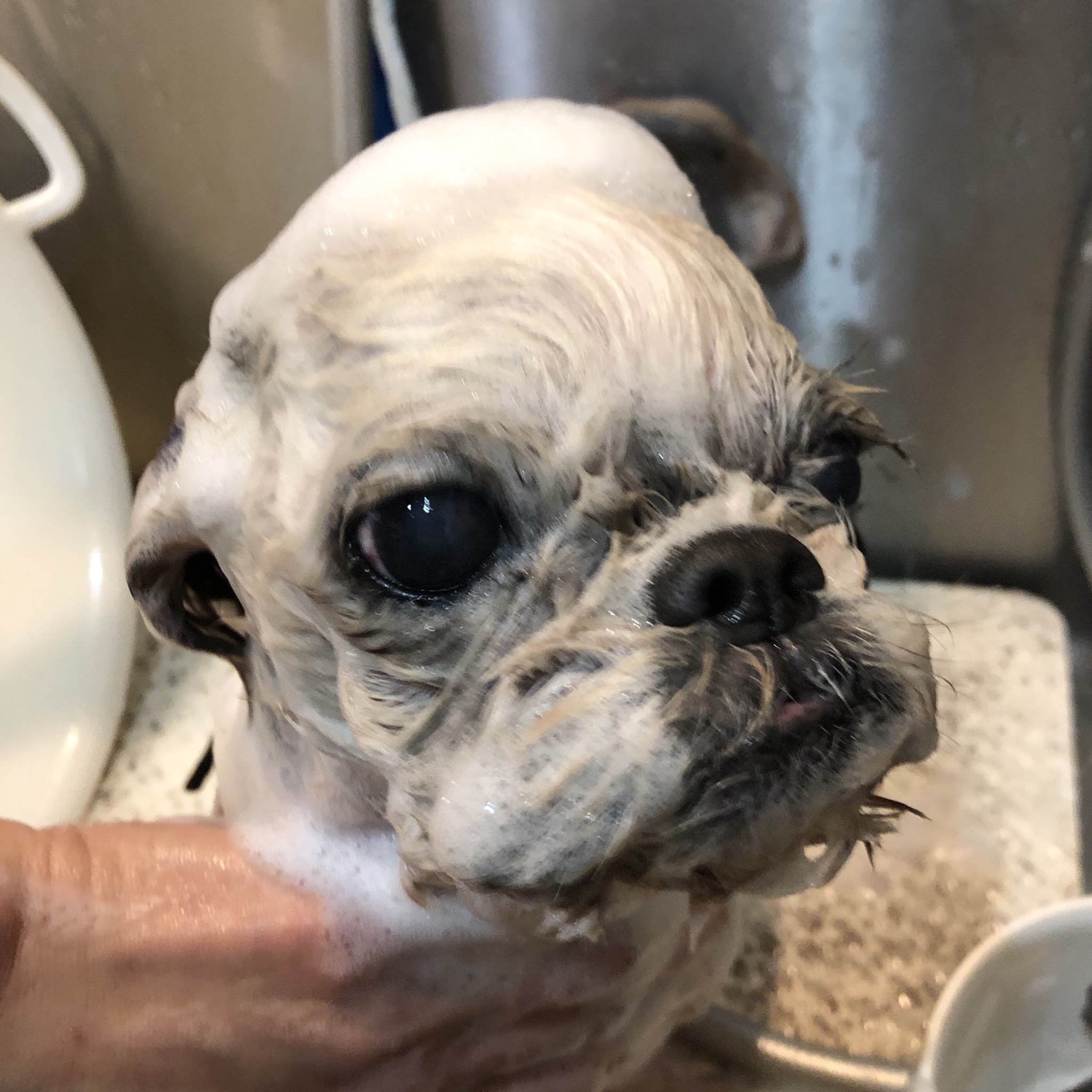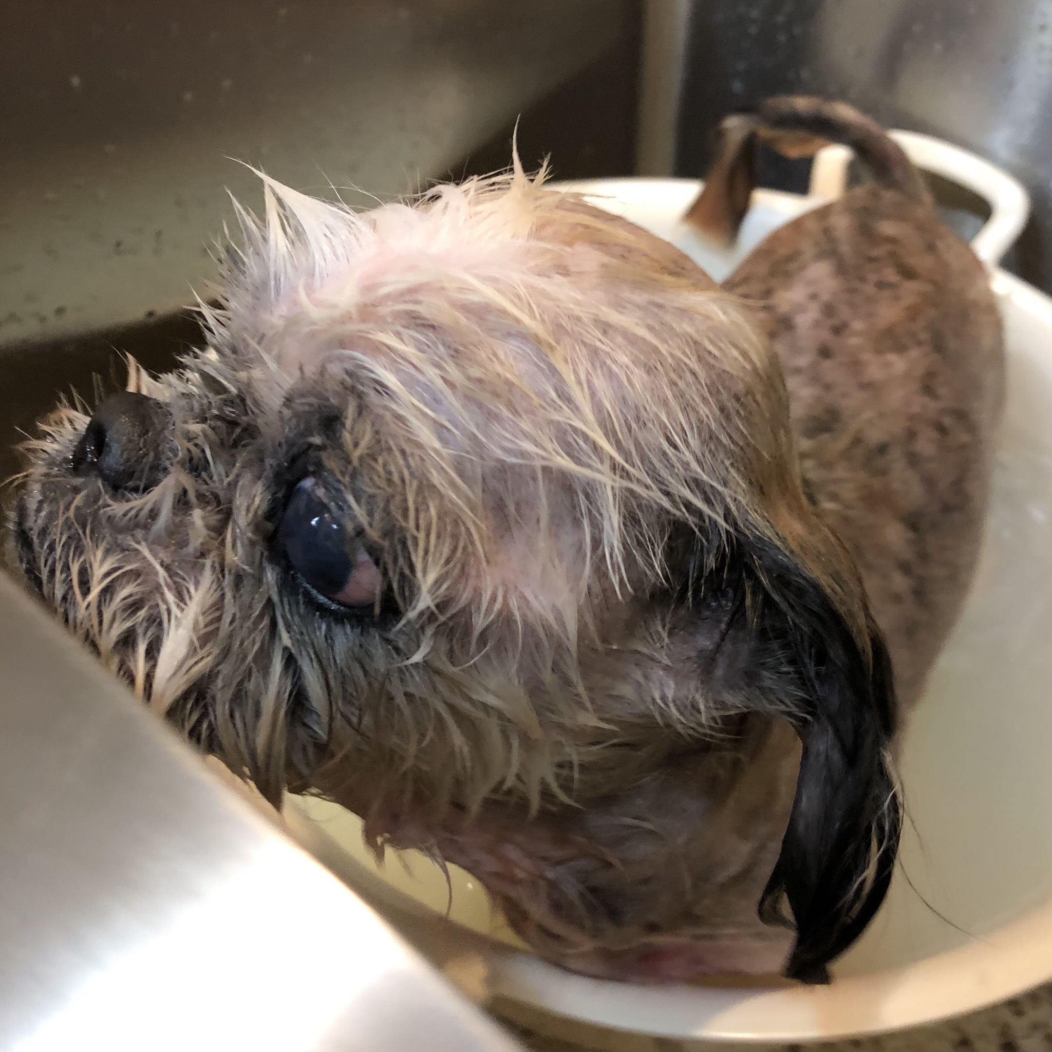 今日は、朝、夕、共に、掻くために止まることなくドアtoドアでお散歩できたハラミちゃんです! お散歩楽しくなってきたかな?嬉しいです♪ とはいえ、家では痒そう〜。 耳が痒くない分、身体と足をボリボリ、ガジガジ。 赤くなってしまいました。 フケはおさまってきているのですが。 ごはんは、皮膚ケア用のドライフードとサプリ(オイル系、ビタミン系、乳酸菌系)などを与えていて、オヤツは肉や魚の素材のみのものです。 シャンプー いたって普通にやらせてくれます。 (顔のゆすぎはイヤイヤするけど、これはシーズーさんのデフォルトってことで。) 今日のメニュー ・クレンジングジェル(脂落とし、胸と腹) ・ナノベイジングプロをスプレー(脂落とし、耳と全体) ・アロビーンシャンプー(保湿) ・アニマー湯プラスの温浴(抗菌、保湿など) ・セラミドジェル(保湿) やれやれ、、顔のハラミちゃん。 抱っこされて、しばしまったり。 今日は、マズルのコーミングはNGでした(^_^;) ハラミはAngel's Taleの保護犬です ツンデレ系シーズー女子・ハラミ先輩★里親募集中! (仮名・メス・申告11才) 日々の様子 >>>ハラミ日記 ハラミについて>>>プロフィール 保護時の検診>>>代表ブログ 保護時の様子>>>プチステイ先 キャリーバッグで移動する練習もしないとね〜