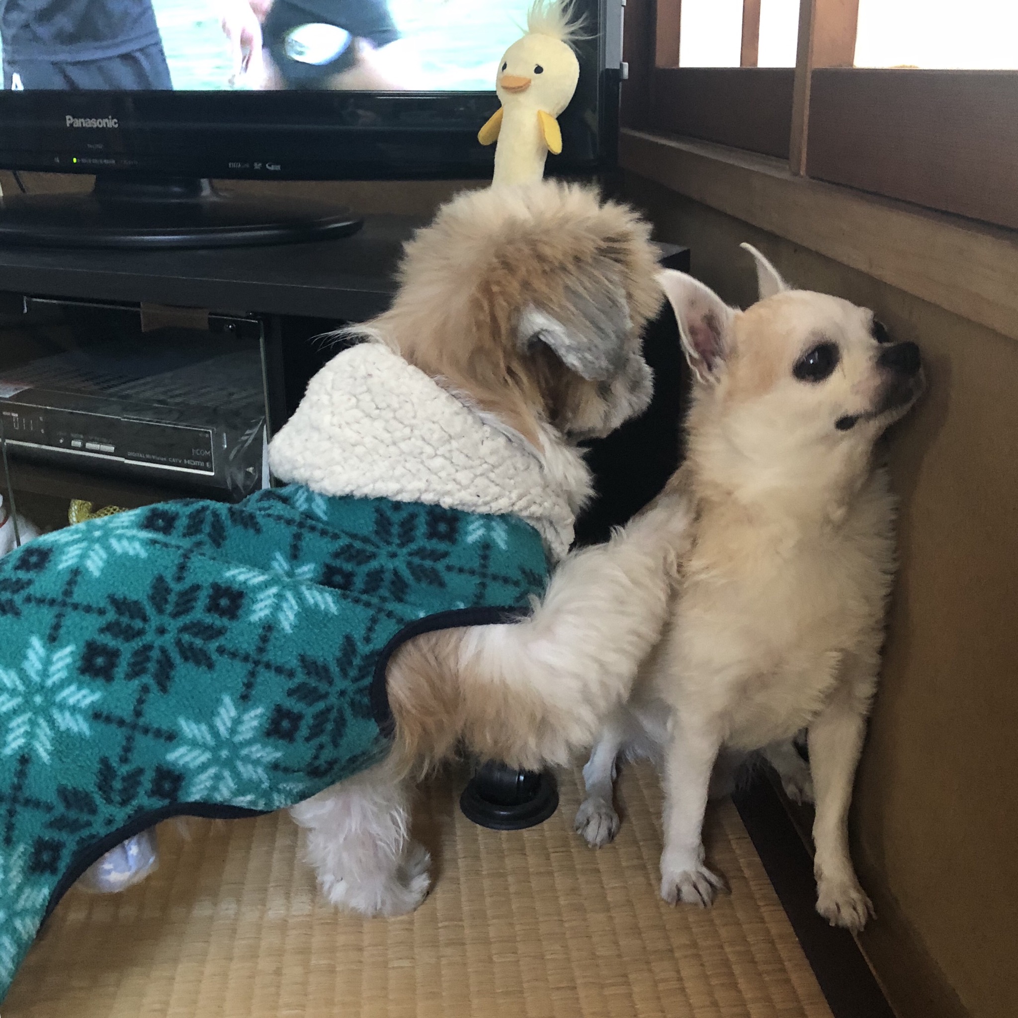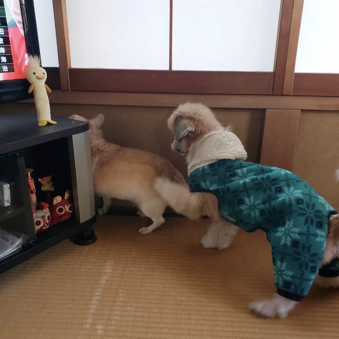 コタツのすぐ横がもい君の定位置になっています。
