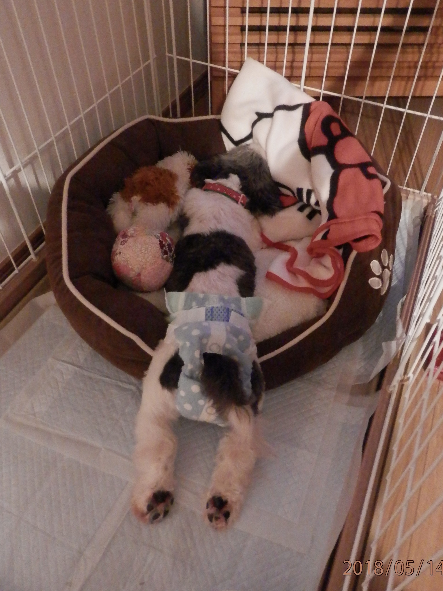 順調に我が家に慣れてきています。時にはおなかを出して上を向いて寝ているほどです(笑)