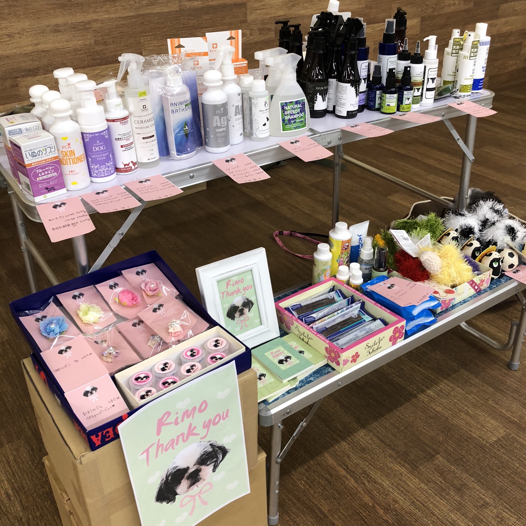 今日はオフ会。 そして、りもちゃんのトライアル! 持参するご支援いただいた洋服を着せたりしてみました。 カジュアルで可愛い! ドレッシーで可愛い! Yukonさんに連れて行ってもらったよ! クルマの中でも可愛い〜 オフ会でのホンデホックのブース りもちゃんコーナー♡ 看板犬 寝る看板犬 りもちゃんを撮影する会 りもちゃんを抱っこする会も。 恒例の徒競走! 最終走で、りもちゃんと参加しました! 見事、完走! 写真は少しですが、 たくさんのシーズーさんが来てくれました♪ にっしーさんが使ってくれていた、昨年のオフ会でホンデホックでお買い上げくださった方へのプレゼント・ツバサンキューメモ帳とリアルツバサくんで記念撮影♪ 可愛いりもちゃん。 たくさん可愛い!と言ってもらいました♪ ご参加くださった皆さん、ありがとうございました! そして、 この後、りもちゃんをトライアル先に連れていきました〜! |