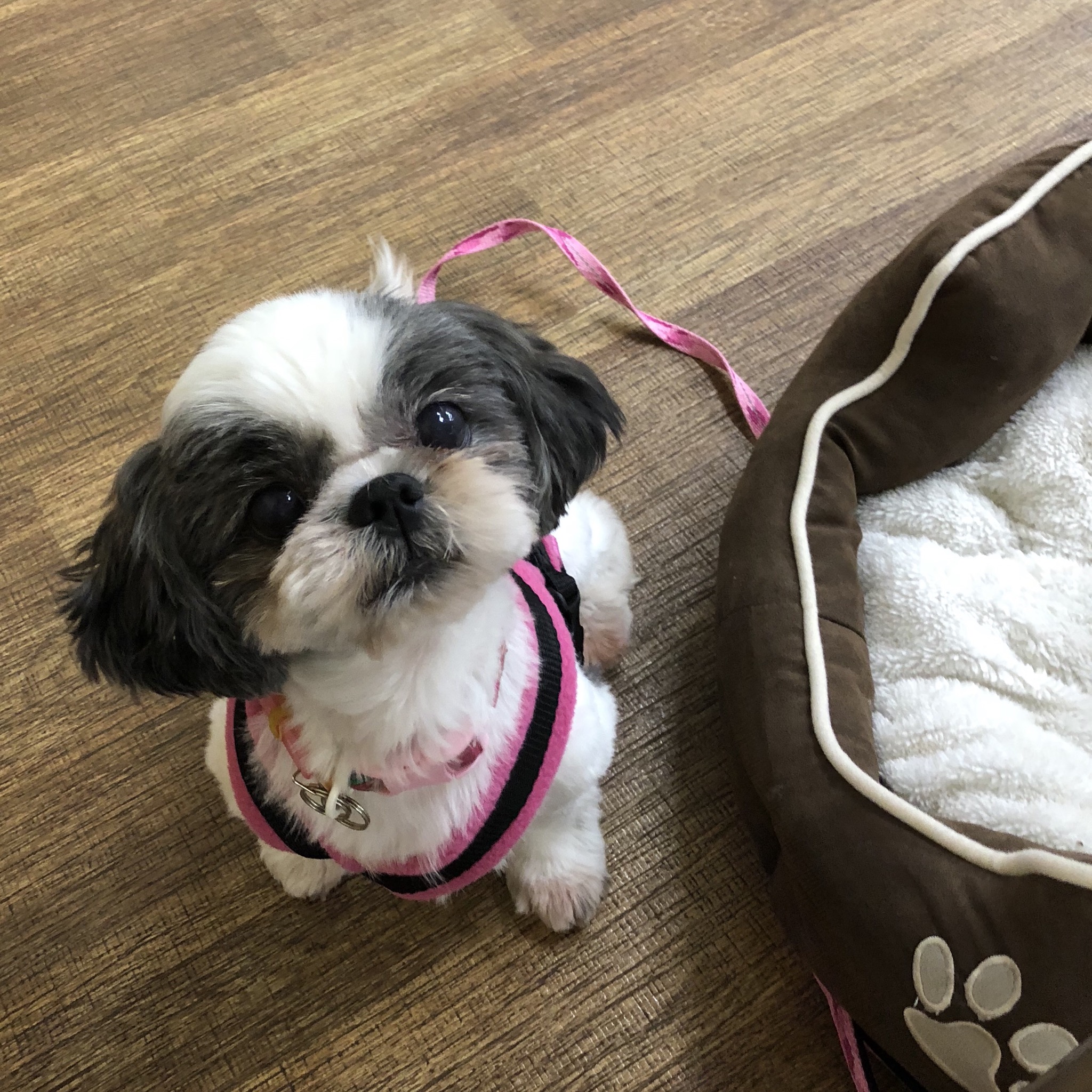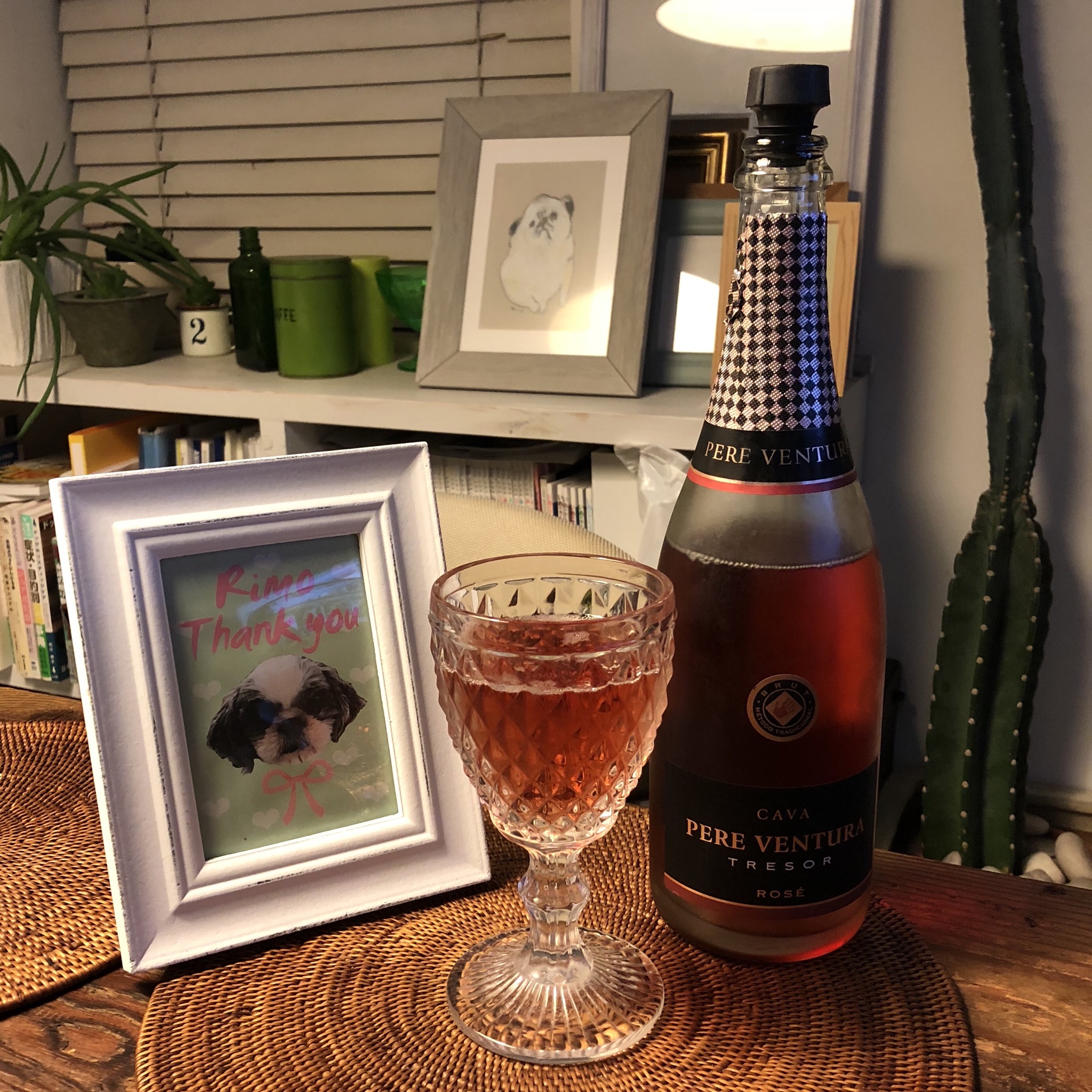 りもちゃんを無事お届けし、 りもちゃんにふさわしい可愛いピンクのスパークリングで小さく宴しました♡ りもちゃんがいなくなり寂しいですが、 家族5人の皆さんそれぞれ、 とっても嬉しそうで、りもちゃんへの愛で溢れていた様子を思い出すと、嬉しい気分になります。 ★ N様からのお便り 早速ですが、トライアル初日の報告をさせていただきます。 おふたりがお帰りになったあとのりもちゃんの様子です。 午後7:30 おなかがすいてたのかな? お食事30秒で完食!! 好奇心旺盛なりもちゃん、家の中を探検したり、 いただいたミニーちゃんで遊んだり(←新しいもの好きね) お気に入りのシーズーちゃんをはむはむ。 たまに お股をかるくかじかじ。かゆいのかな? ただれている様子はないので、少し様子を見たいを思います。 ゲージではなかなか眠らないりもちゃん、 やっぱり自分のにおいがついてないと不安なようで、持ってきていただいたベットでまったりし、 寝てしまいました。 午後11:30 そのままゲージの中に移動。おやすみなさい。 がっ! しかしっ! 午前1:30 リビングにだれもいないことを察知! 結構大きな声で吠えてビックリっ! いそいそとリビングに降りてしばらく一緒に過ごし、再び睡眠?? でもやっぱりっ! 午前3:30 だれもいない(怒)!と呼び出しが。。。 何か音があればいい?と思い、ラジオを付けておく作戦を実施。 しばらくして睡眠?? 午前5:30 起床 我が家は早起きなので、全然OK! 早速、「おなかすいた~」「ゲージから出して~」と要求。 午前6:00 初のお散歩です。今日は風が強いですが、りもちゃん、なんのその。 ぐいぐい探検してきました。 ただ、今日は日曜日。まだお散歩をしている近所のワンちゃんがおらず、 お友達はできませんでした。 今日は、午後から女子会(娘の誕生日会)に参加します。 女子力が高いりもちゃんが主役になること間違いなしですっ! りもはAngel's Taleの保護犬です キュートガール・りも★トライアル中! (仮名・メス・申告4才) 日々の様子 >>>りも日記 りもについて>>>プロフィール