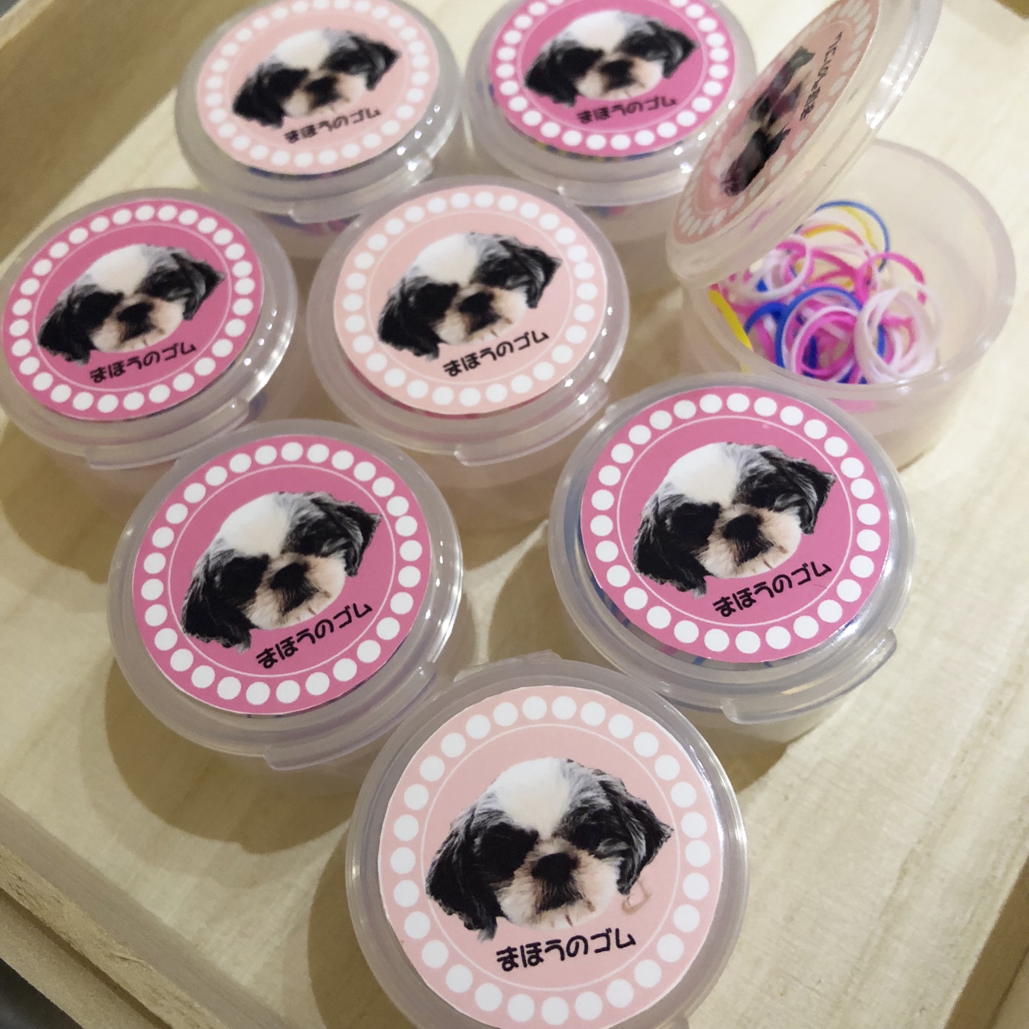オフ会では、結んでるシーズーさんに最適な 毛にからみづらく、耐久性がある「まほうのゴム」をりもちゃんバージョンで販売します! ゴムの色は、白、ピンク、ブルー、イエローが混ざっています。 ブルー多目、ピンク多目も用意しました。 380円(税込) ラベルのモデルは、りもちゃん♡ ホンデホックのブースでは、ケア用品をメインに販売いたします。 お買い上げの方には、先着で、 りもちゃんトライアルの感謝を込めて、 りもちゃんハッピーメモと、 りもちゃんサンキューメモをプレゼント! モデルはりもちゃん♡ 是非、お急ぎください! りもちゃんアイコンが可愛いので、、 調子に乗って、値札などもつくりました♪ りもはAngel's Taleの保護犬です キュートガール・りも★トライアル予定 (仮名・メス・申告4才) 日々の様子 >>>りも日記 りもについて>>>プロフィール PR