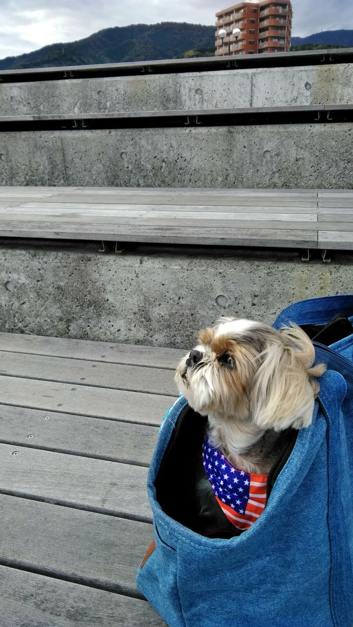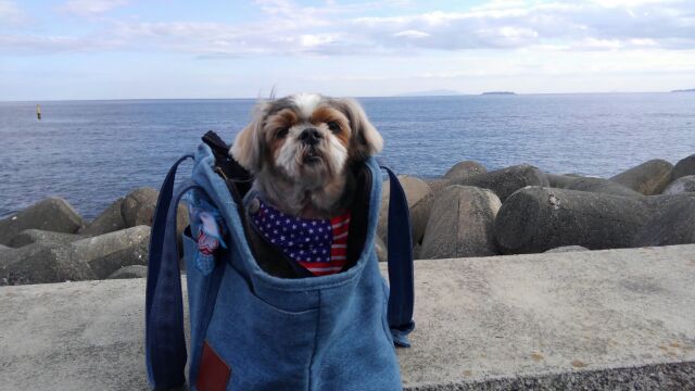 最近、スマホの機能で、「去年の今ごろ」の写真が、パッと出てきたりします。 それで、突然、この写真が。。 いや〜、やっぱりイケワン! 真志先生! なんて、思っていたら、 幸せのお便りを頂きました♪ ★S様からのお便り★ 先日湯河原に行って来ました 後ろは初島と大島です。 電車の中でも真志君はお利口さんで真志バックに入って大人しいです❤ 真志のお陰で去年までは、行けなかったペットと一緒に泊まれるお宿に泊まれてとても楽しい経験をさせてもらっています。 色々なワンコや飼い主さんとも交流出来て勉強にもなります。 お部屋では粗相もなく直ぐに布団で寛く真志に私達は癒されてます。 真志の皮膚のためにと、ワンコも入れる温泉に入れるのですが、温泉やシャンプーの気遣いはいらないとばかりに、猛抗議してきます(汗) 仕上げは怒りの放尿で鬱憤を晴らすようです(笑) 毎日が楽しく母も巻き込みながら過ごしています。 又、ご報告しますね。 ★ ★ ★ いつも、旅行に連れて行ってもらえる真志くん。 思い出がどんどん増えてます♡